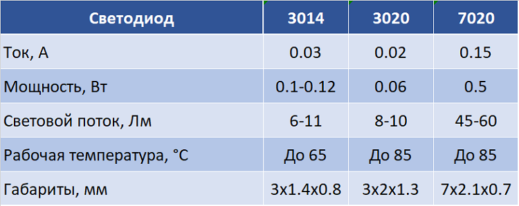 [stextbox id=’info’]Промышленность выпускает как светодиоды с люминофором, так и RGB-матрицы — у них разные области применения. Обычный светодиод, применяемый для индикации, потребляет от 2 до 4 В постоянного напряжения при токе до 50 мА. Светодиод, который используется для освещения, потребляет такое же напряжение, но ток выше — от нескольких сотен мА до 1 А в проекте. В светодиодном модуле отдельные светодиоды могут быть включены последовательно и суммарное напряжение оказывается более высоким (обычно 12 или 24 В).[/stextbox]