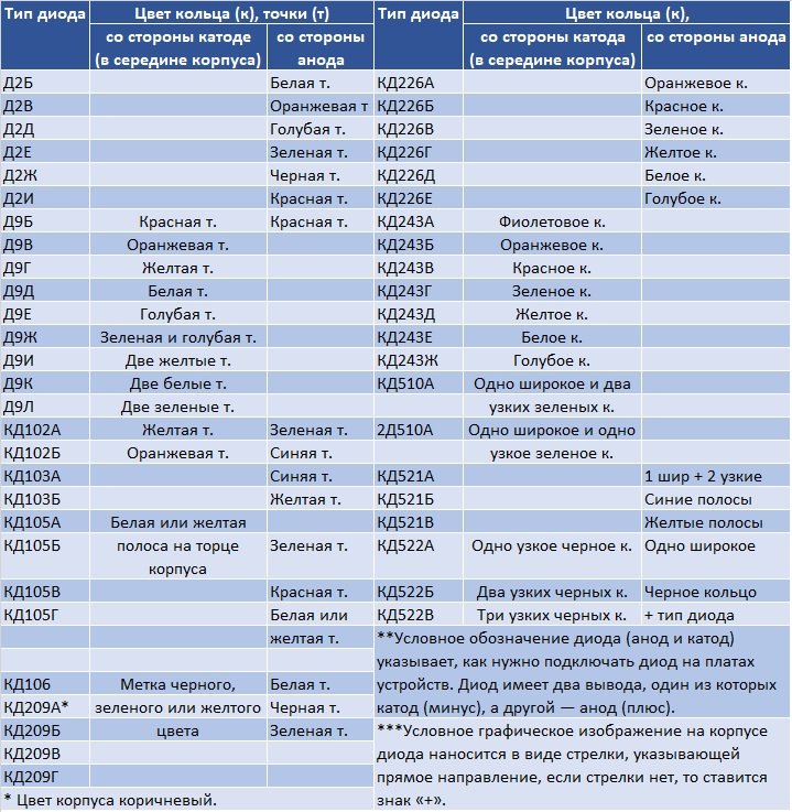 Более подробно о маркировке диодов написано в статье Все о полупроводниковых диодах. Если у вас остались вопросы, можно задать их в комментариях на сайте. Также в нашей группе ВК можно задавать вопросы и получать на них подробные ответы от профессионалов.