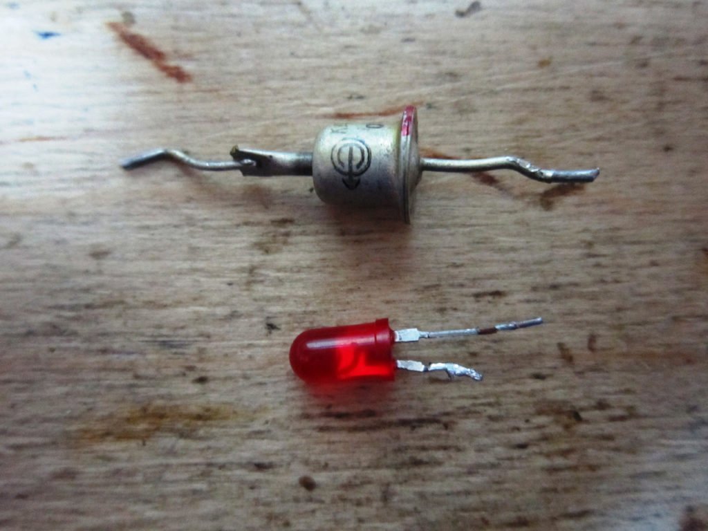- светодиод. При прохождении электрического тока через такой элемент он начинает светиться в результате трансформации энергии в видимое свечение;